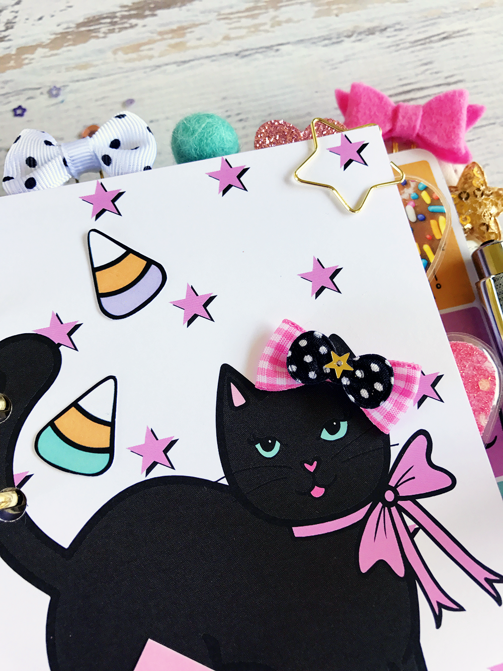 I love adding lil fabric bows and such to Dashboards, to give em a lil pop! I use normal planner Girl glue sticks to and start gluing everything done!