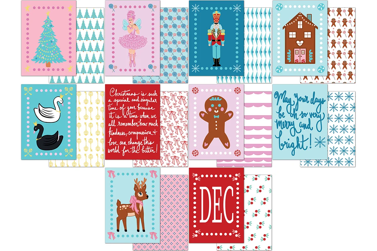 Hello there everyone! It is Andrea here and today I am super excited to share with you the full reveal of our newest collection, "December Dreams"! This beautiful Christmas collection is inspired by the new The Nutcracker and the Four Realms movie by Disney, as well as the classic The Nutcracker fairytale ballet! The Nutcracker is a classic Christmas tale that is filled with magic and wonder! Subsequently, I just had to create a collection for you that was filled with that same kind of magic and wonder! To accomplish this, I worked to design patterns and images that I hoped would convey not only the central story of The Nutcracker but also images and patterns that reflect the main characters and, of course, the magical and imaginative lands that can be found in the fairytale. In "December Dreams" you will find fantastic, whimsical beings like the Sugar Plum Fairy and the Nutcracker, of course! You will also find lots of sweet goodies in this collection, like gingerbread men and houses, lollipops, peppermints, etc, which are all indicative of one of the four realms, the Land of Sweets! The other magical lands, or realms, in The Nutcracker are also included in the collection in various ways. For example, you will find lots of snowflakes in patterns as well as embellishments to represent the Land of Snowflakes. I really want "December Dreams" to feel like that same kind of winter wonderland that can be found in The Nutcracker...something so incredible that it must be from a dream! I am so happy to be able to share this collection with you! I think you are going to love it! I know I do!