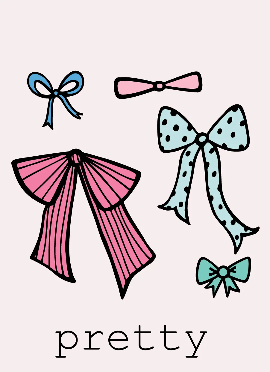 And the little kitty that says "cute and sweet" with the scallops, along with the grouping of bows one that says "pretty" -- well those are two of the cutest and girly-est ones for sure!
